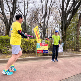 8人のメンバーさんと以前に参加した事がある少年が皆さんに押されて飛び入り参加、最後の一周は監督の清水さん、そしてゴール手前で待ち構えていた皆様が揃ってのゴールイン。